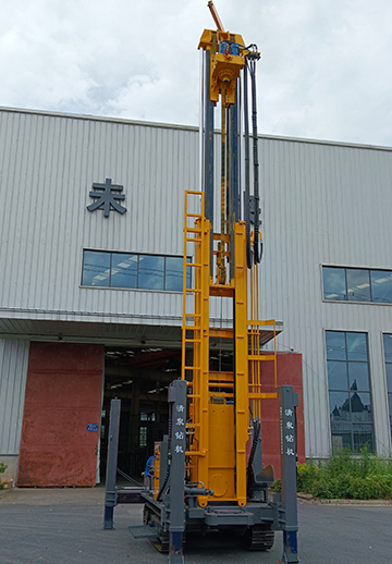 清泉350型潛孔水井鉆機 發(fā)動機功率:玉柴91千瓦。 油泵:美國泊姆克+ 動力頭馬達: BM6-390。 最大扭矩: 11000扭米。 最大提升力: 25噸。 操作閥:三立。 整機機重: 8.5噸。 尺寸:長5.8米(底長4. 15米),寬1.9米,高2. 5米 鉆孔直徑: 105-350 毫米。 鉆桿直徑: φ76/ φ89毫米(3 米)。 一次性推進長度: 6600 毫米。